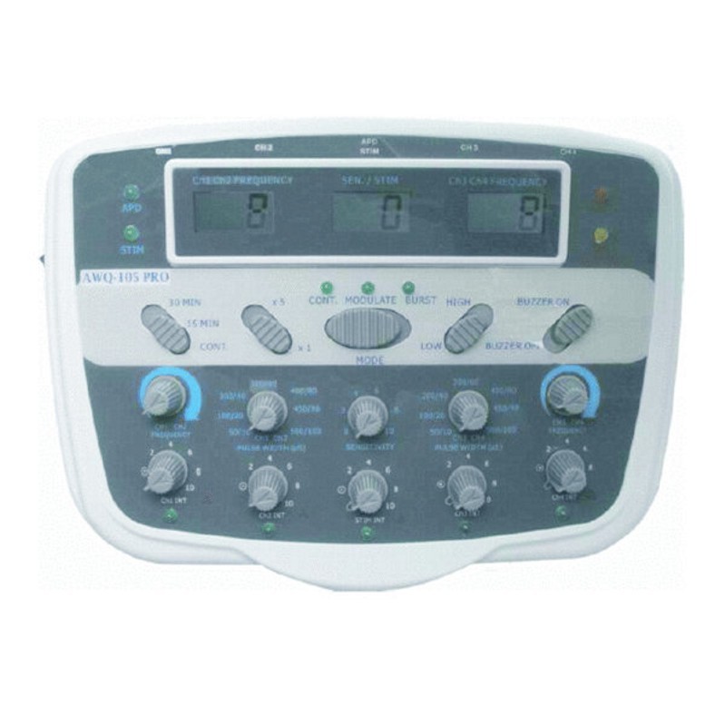 Dotato di 3 display LCD, di 5 uscite, Possibili tre diverse frequenze di stimolazione: continua – intermittente – denso dispersa