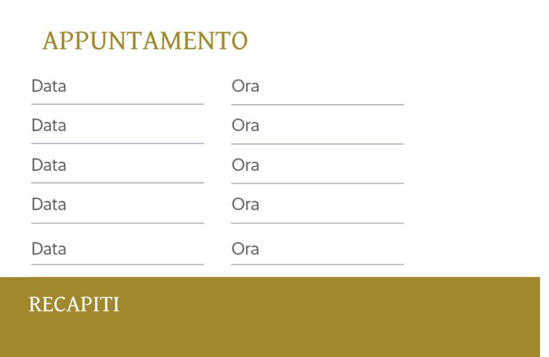 Biglietto da visita, con data e orario per appuntamento sul retro.