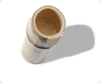 Tubo di bambù per spegnimento graduale della moxa che brucia, tecnica Junji Mizutani.