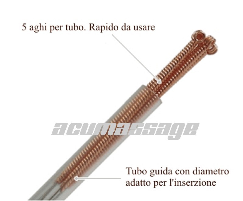 Confezionamento degli aghi: 5 aghi in un blister con un tubo guida.